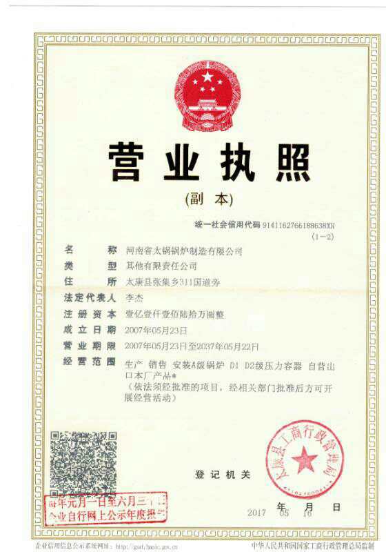 河南省太鍋鍋爐制造有限公司(原河南省太康鍋爐廠始建于1976年)始建于70年代初,經(jīng)40多年的艱辛探索,靠科技興業(yè),走科學(xué)管理之路,現(xiàn)已發(fā)展成為承接制造、安裝、設(shè)計大、中型供熱系統(tǒng),生產(chǎn):SZS燃油燃?xì)庹羝仩t、燃煤蒸汽鍋爐、燃油鍋爐、燃?xì)忮仩t、電加熱鍋爐、生物質(zhì)鍋爐、茶水鍋爐、有機熱載體鍋爐、熱風(fēng)鍋爐,蒸壓釜、燃油蒸汽鍋爐、燃?xì)庹羝仩t、燃油熱水鍋爐、燃?xì)鉄崴仩t并承擔(dān)安裝120噸熱水鍋爐、蒸汽鍋爐,生物質(zhì)鍋爐,加工制造一、二類蒸壓釜、壓力容器,化工機械的省一級**企業(yè)。